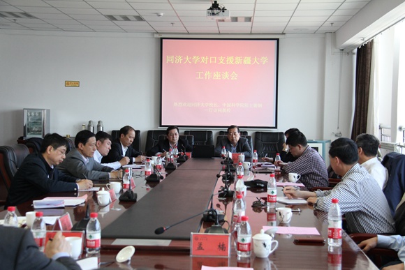 2016年5月25日,同济大学对口支援新疆大学工作座谈会在新疆大学科技楼11楼会议室召开。同济大学校长、中国科学院院士裴钢、党委副书记姜富明、自治区教育工委副书记、新疆大学党委书记赵嘉麒,同济大学和新疆大学相关职能部门、学院领导参加座谈会。会议由新疆大学党委常委、副校长吴广明主持。